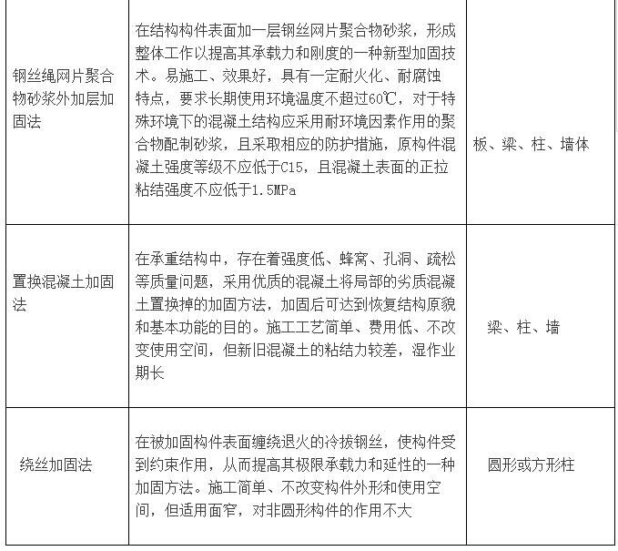 根據(jù)加固工程的特點(diǎn),加固設(shè)計(jì)除要求做到技術(shù)安全可靠、經(jīng)濟(jì)合理、施工簡(jiǎn)便、確保質(zhì)量、環(huán)保節(jié)能并滿(mǎn)足使用要求。以上是小編為大家總結(jié)的混凝土結(jié)構(gòu)常用加固方法概況: