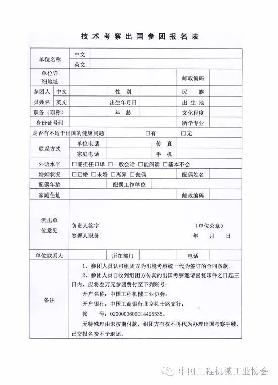 考察團(tuán)初步預(yù)計(jì)境外活動(dòng)時(shí)間14天,參團(tuán)費(fèi)3萬元人民幣/人,其中含往返機(jī)票、境外食宿費(fèi)、境外交通費(fèi)、雜費(fèi)等,不包括在國內(nèi)發(fā)生的費(fèi)用。歡迎工程機(jī)械相關(guān)單位人員報(bào)名參加,報(bào)名費(fèi)2000元,用于辦理出國手續(xù)。