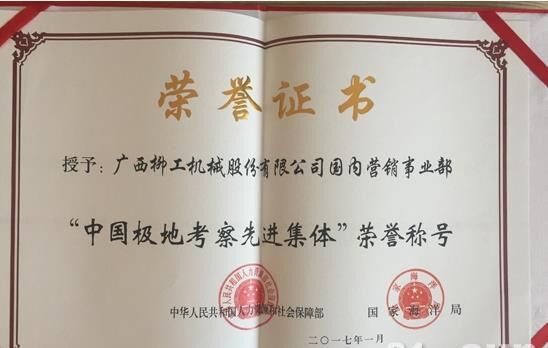 2017年4月24日,北京 — 今天,由人力資源和社會保障部、國家海洋局聯(lián)合表彰的中國極地考察先進(jìn)集體和先進(jìn)個人活動在北京舉行,柳工榮獲“中國極地考察先進(jìn)集體榮譽(yù)”。
