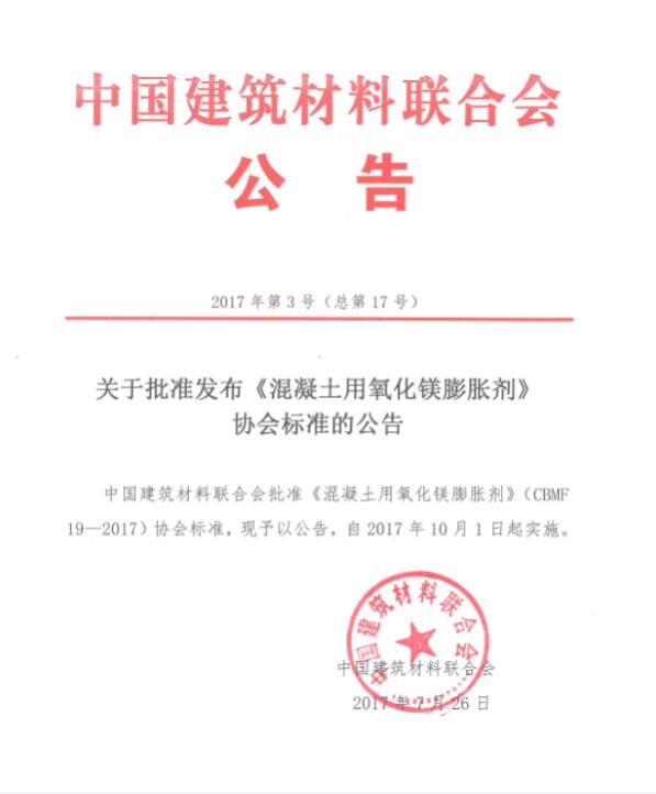 2017年7月,由中國混凝土與水泥制品協(xié)會(以下簡稱協(xié)會)組織制定的《預制混凝土箱涵工藝技術(shù)規(guī)程》和《混凝土用氧化鎂膨脹劑》兩項協(xié)會標準,通過審定并發(fā)布批準公告,標準號分別為CBMF 18-2017和CBMF 19-2017,將同時于2017年10月1日起實施。這是國務(wù)院《深化標準化工作改革方案》(國發(fā)[2015]13號)及質(zhì)檢總局、國家標準委《關(guān)于培育和發(fā)展團體標準的指導意見》(國質(zhì)檢標聯(lián)[2016]109號)發(fā)布后,協(xié)會與中國建筑材料聯(lián)合會(以下簡稱聯(lián)合會)聯(lián)合發(fā)布的首批協(xié)會標準,兩項標準將公開出版并發(fā)行。