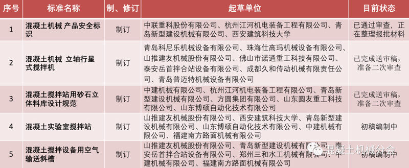 今年在廣州召開了團(tuán)體標(biāo)準(zhǔn)第五次全體會(huì)議并評(píng)審了三項(xiàng)標(biāo)準(zhǔn):《混凝土機(jī)械 立軸行星式攪拌機(jī)》、《混凝土機(jī)械安全標(biāo)識(shí)》、《混凝土攪拌站用砂石立體料庫設(shè)計(jì)規(guī)范》。