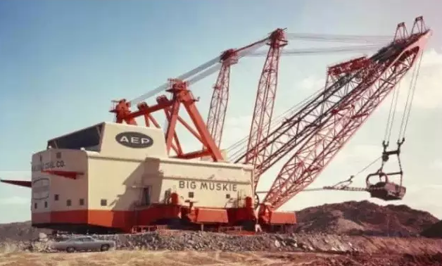 BIG MUSKIE官方編號(hào)為BE-4250W,是迄今最大的步進(jìn)式拉鏟,1967年B-E開(kāi)始為美國(guó)的一個(gè)露天煤礦建造它,直至1969年5月建成并投入使用,當(dāng)時(shí)的制造費(fèi)用為2500萬(wàn)美元,專(zhuān)門(mén)用于土石剝離。它有22層樓高,用13800V高壓電驅(qū)動(dòng),僅空鏟斗的重量就有209噸;1991年Big Muskie因礦區(qū)采空而停止運(yùn)行,1999年爆破拆解,僅鏟斗留存下來(lái)。有卡車(chē)對(duì)比圖哦~