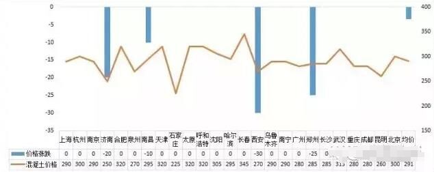 圖2 主要城市混凝土價格變化情況
