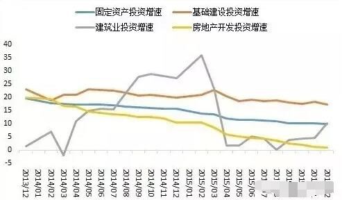 2015年,全國固定資產投資(不含農戶)551590億元,比上年名義增長10%(扣除價格因素,實際增長12%),增速比1-11月份回落0.2個百分點。從環(huán)比速度看,12月份固定資產投資(不含農戶)增長0.68%。建筑業(yè)固定資產投資總額4895億元,同比增長10.2%,增速較1-11月提高了5.4個百分點。今年以來,制造業(yè)投資大勢已去,房地產投資降至歷史低點且尚未見底。由于基建投資具有逆周期特性且保持快速增長,穩(wěn)增長寄希望于基建投資托底。發(fā)改委更是密集批復基建項目助力穩(wěn)增長。基礎設施投資(不含電力)101271億元,比上年增長17.2%,增速比1-11月份回落1個百分點。其中,水利管理業(yè)投資增長21%,增速回落2.3個百分點;公共設施管理業(yè)投資增長20.2%,增速回落0.3個百分點;道路運輸業(yè)投資增長16.7%,增速回落0.8個百分點;鐵路運輸業(yè)投資增長0.6%,增速回落0.2個百分點。
