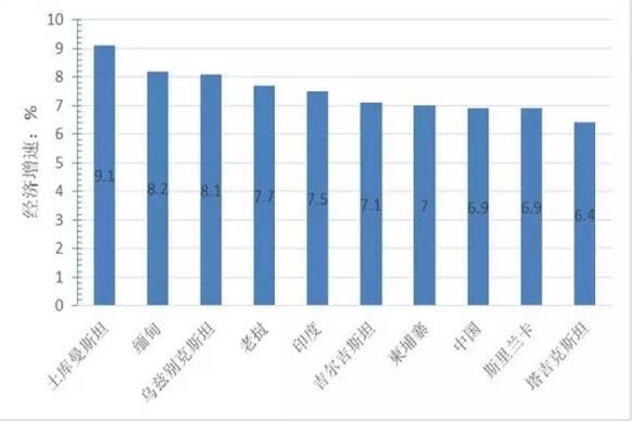 圖3 “一帶一路”地區(qū)經(jīng)濟(jì)增速前10名的國家
