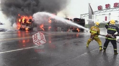 參與施救的消防戰(zhàn)士介紹,當時在現(xiàn)場看到,一輛槽罐車與一攪拌車側(cè)翻在路中央,不遠處是一處加氣站,經(jīng)過火情偵察,發(fā)現(xiàn)載甲醇槽罐車正在猛烈燃燒,槽罐車儲量約30噸,情況危機。為了確保安全,救援官兵立即協(xié)助現(xiàn)場交警實施交通管制、疏散群眾,同時,架設(shè)水槍、水炮陣地,防止火勢蔓延,展開滅火。