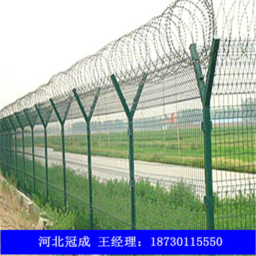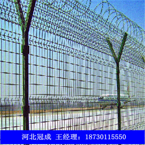 機場圍欄網(wǎng)因為具有安全性高、防攀爬能力好,網(wǎng)片連接方式采用特制SBS緊扣件,有效防止人為的破壞性拆卸,橫向四道折彎加強筋,使網(wǎng)面強度明顯增加。該產(chǎn)品堅固耐用、價格中等偏低,適合大面積采用。