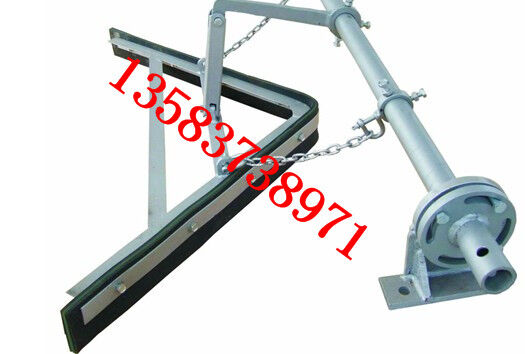 在正機安裝時,首先確定好安裝位置,將前吊桿焊在清掃器三角板上,再將橫粱焊在機架上,前吊桿調(diào)正螺絲頂在橫梁上,調(diào)正刮板與膠帶距離,后吊環(huán)角鐵焊在機架槽綱下面,吊著清掃器尾部,自動調(diào)正清掃器