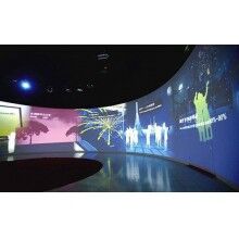采用圖像拼接邊緣融合技術(shù)(soft edge),消除邊緣陰影,使整屏達(dá)到一體化立體全景效果,從而使 觀測(cè)者全身心投入到虛擬世界中;