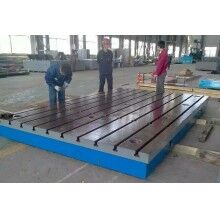 又名鑄鐵基礎(chǔ)平臺,按JB/T7974-1999標準制造,產(chǎn)品制成盤板式和箱體式,工作面有長方形,正方形或圓形,材料HT200-300、QT400-600、ZG15-45。工作面采用刮研工藝,工作面上可加工V型、T型、U型槽、燕尾槽、圓孔、長孔等。