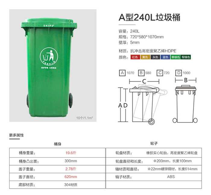 1.更加環(huán)保。塑料垃圾桶均采用高密度聚乙烯(HDPE)一次注模成型、減少制作原材料,節(jié)省加工時間,降低制作成本,延長了垃圾桶使用壽命。