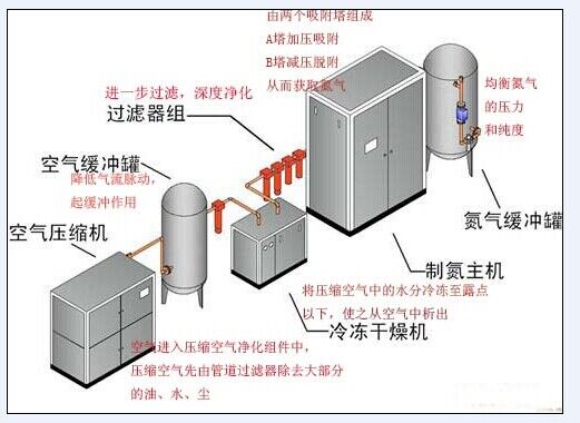 制氮裝置:以空氣作為原料,以碳分子篩作為吸附劑,運(yùn)用變壓吸附原理,利用碳分子篩對氧和氮的選擇性吸附而使氮和氧分離的方法,通稱PSA制氮。操作維護(hù)方便、運(yùn)行成本較低、裝置適應(yīng)性較強(qiáng)等特點(diǎn),故在1000Nm3/h以下制氮設(shè)備中頗具競爭力,越來越得到中、小型氮?dú)庥脩舻臍g迎,PSA制氮已成為中、小型氮?dú)庥脩舻氖走x。