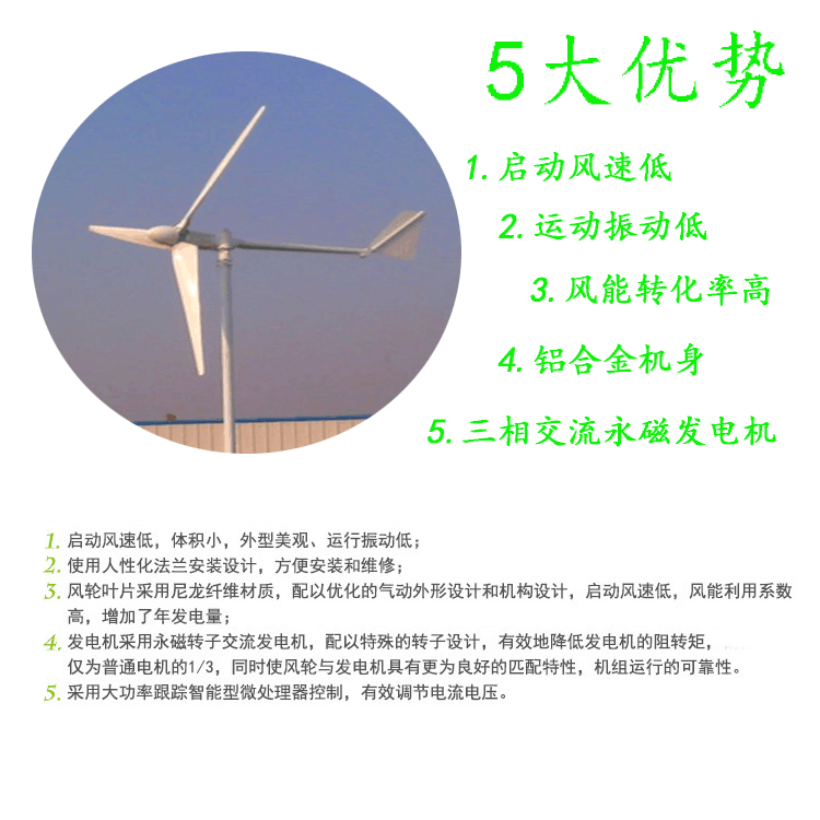 1千瓦風力交流發(fā)電機 風力發(fā)電機家用200v1000w屋頂安裝發(fā)電