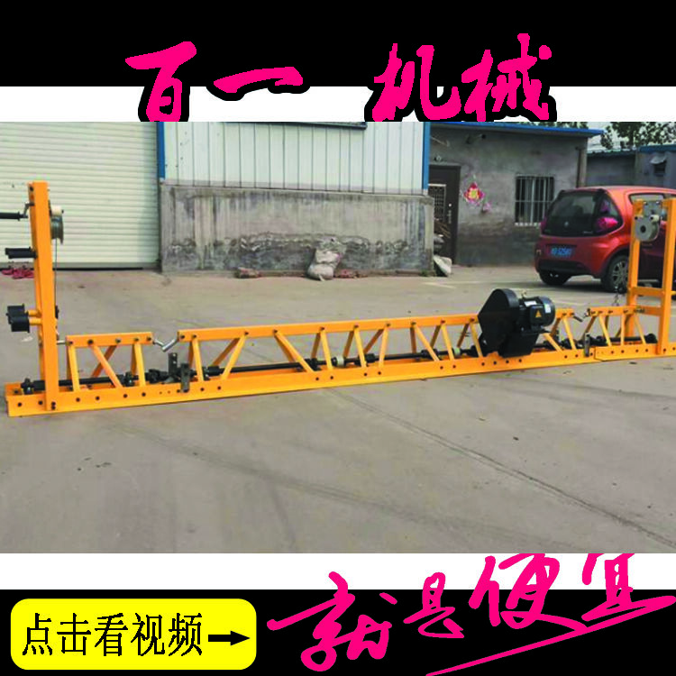 全體框架采用全鋼制構(gòu)造、鞏固抗震,整平底板選用錳鋼板,經(jīng)外表處理耐磨、耐腐蝕。附有離合式絞輪,省力、方便,該機(jī)可配汽油機(jī)和電機(jī)做動力滿意不一樣工程的需要,該機(jī)可自在組裝4到16米的路面一臺機(jī)器就可完成。