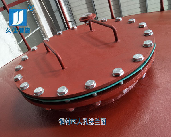 結(jié)構(gòu):鋼襯塑產(chǎn)品一般由桶身、平底、封頂、人孔、進料口法蘭、出料口法蘭和液位孔口法蘭組成,臥室鋼襯塑儲罐通常還有標準鋼質(zhì)支座,鋼襯塑產(chǎn)品一般根據(jù)用戶要求設(shè)計制造。