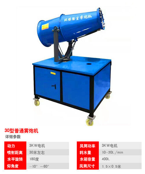 3、風機試運行:當發(fā)電機組一切運轉(zhuǎn)正常后,將電控箱上的電源開關(guān)撥至ON位置,除塵霧炮機,在電控箱上或遙控器上電動“風機開”按鈕,待風機運轉(zhuǎn)正常后,扭動電控箱上的相壓檢測扭,檢查各相線電壓是否均衡,如不服衡,應檢查