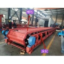 板式給料機(jī)運(yùn)行部件由牽引鏈條,承載構(gòu)件行走滾輪和輸送槽板等組成。