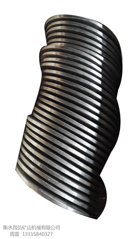絞龍葉片具有剛性好,表面光潔,形狀規(guī)整,內(nèi)外徑可調(diào),長(zhǎng)短可定,精度高,便于安裝,避免了傳統(tǒng)的手工焊接葉片因焊接質(zhì)量造成的弊端,也提高了絞龍葉片的加工能力,扎出的絞龍葉片材質(zhì)是碳鋼板,Q235,Q345和304不銹鋼板,特別是碳鋼板,絞龍葉片表面產(chǎn)生冷作硬化,硬度和耐磨性提高一倍左右,特別是外沿硬度可達(dá)HB240,希望廣大用戶不必?fù)?dān)心邊緣薄的原因,此設(shè)備可調(diào)試扎出幾十種規(guī)格的絞龍葉片。