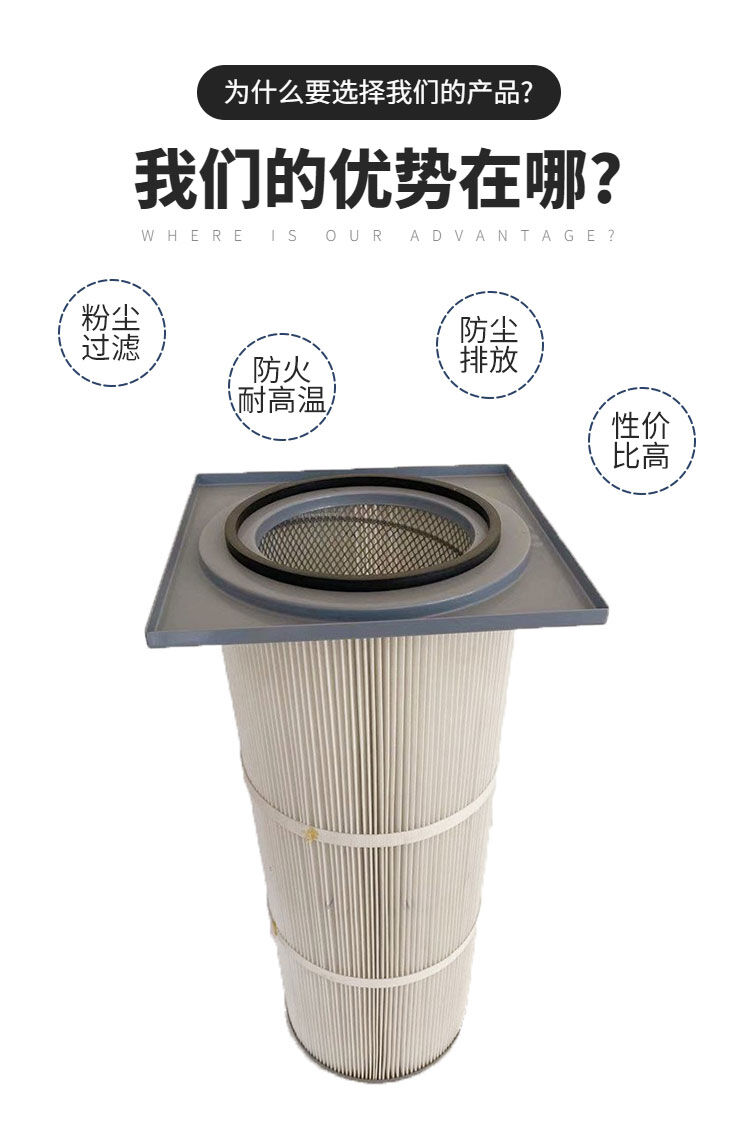 2、聚酯長纖維濾料的應用,使濾筒不僅具有較好的耐酸堿性能,過濾效率更高,運行阻力小,與傳統(tǒng)的濾材相比,其具有不可比擬的耐磨性能和高強度、耐破度,脈沖反吹及其它方式更易清灰,而且可用水反復清洗,而不損傷濾材,延長使用壽命